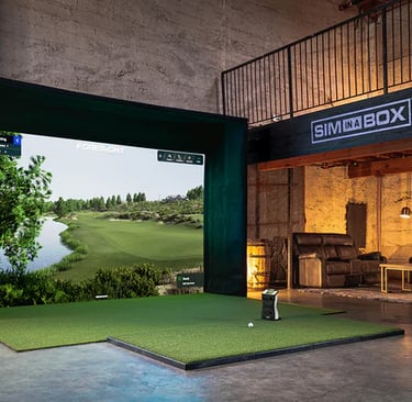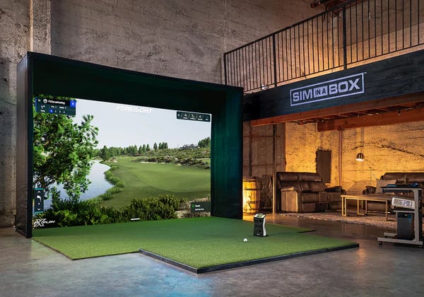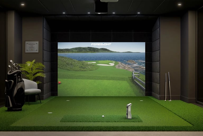 A golf simulator lets you play virtual golf indoors with real clubs and balls.